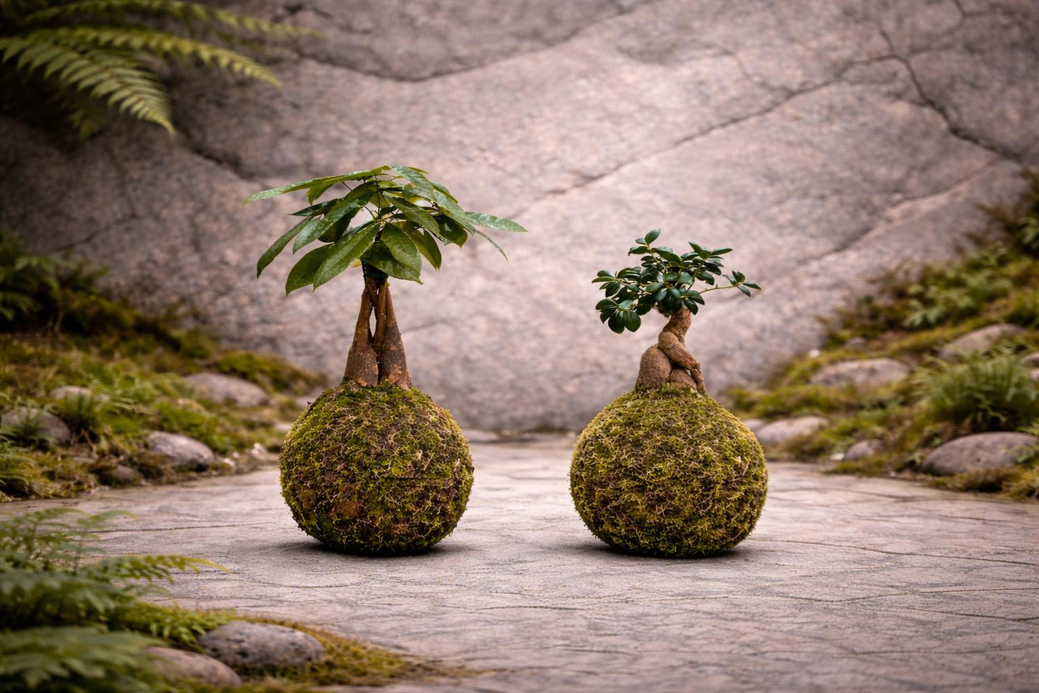 Kokedamas moldadas e criadas à mão, onde tempo e traço encontram o equilíbrio.